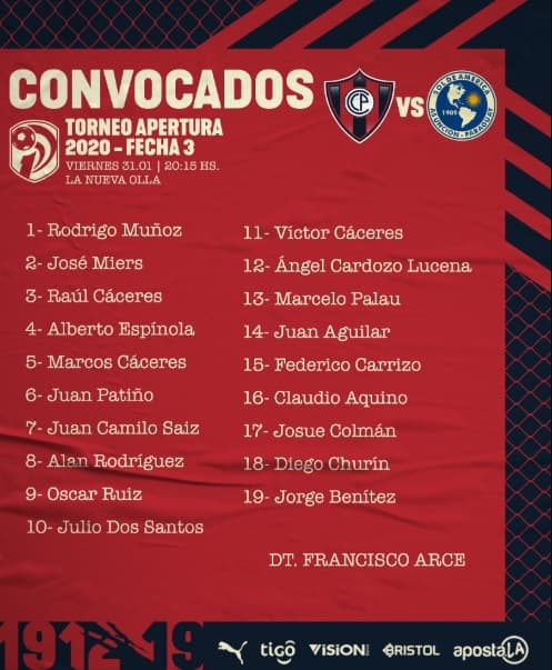 Francisco “Chiqui” Arce dio a conocer su lista de convocados para el partido ante Sol de América este viernes.