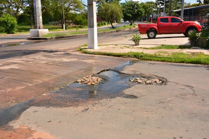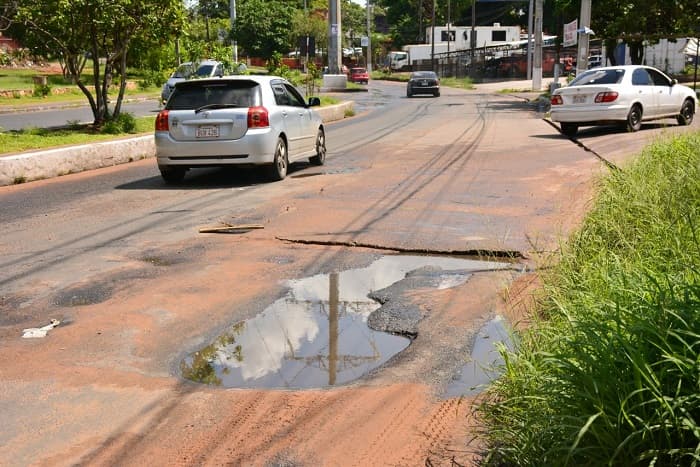 Las avenidas Bruno Guggiari, República Argentina casi Augusto Roa Bastos, y Luis María Argaña son las más importantes que cruzan la ciudad de Lambaré, y actualmente están con profundos pozos, llenos de agua.