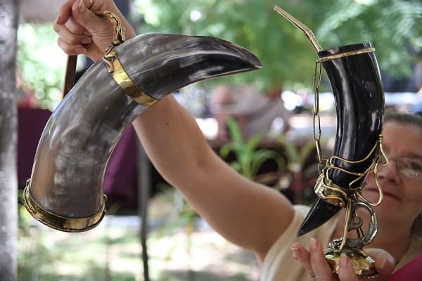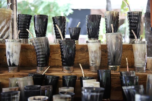 Mientras que Verónica Velázquez, vendedora de guampas hechas de asta de vaca, indicó que se pueden conseguir desde G. 10.000 con detalles de bronce, alpaca y cobre. También venden jarras de cuernos a partir de G. 250.000.