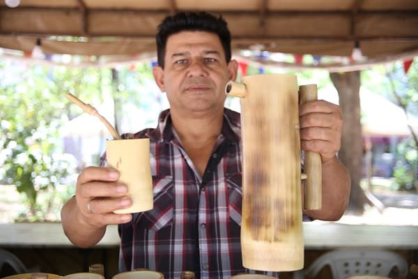 En otro de los stands se encuentra el señor Darío Cuenca, quien hace 18 años se dedica a realizar elementos de tereré de “Tacuara”, es decir, bambú.
