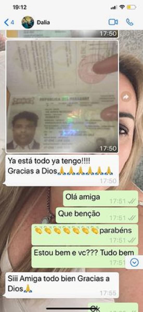 Se trata de una serie de mensajes de texto enviados por Dalia López a la esposa del empresario Wilmondes Sousa, Paula Regina Oliveira, donde informa sobre las gestiones realizadas y comunica, el 9 de enero pasado, que el de Ronaldo ya estaba listo.