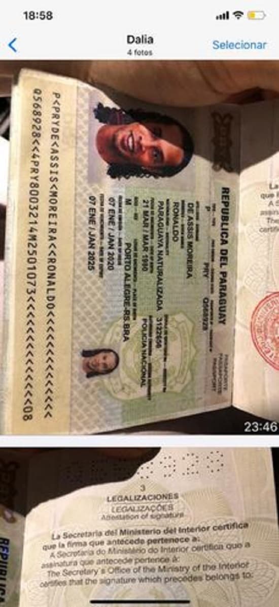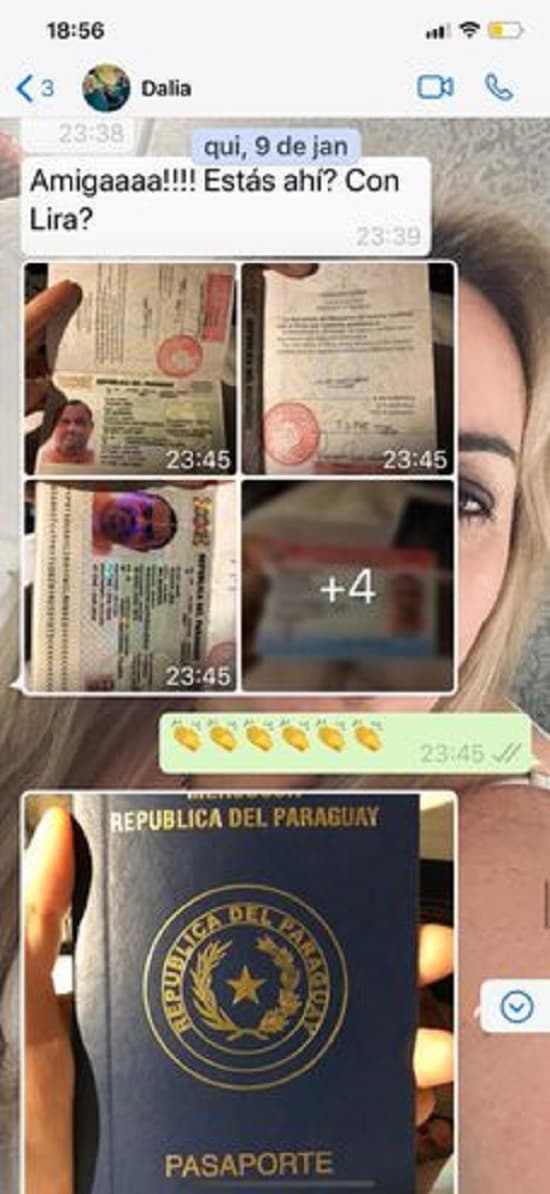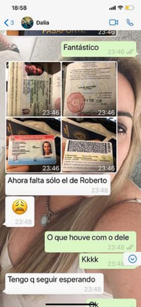 La mujer aparentemente informaba a la testigo, Paula Oliveira, de la marcha de los trámites que hizo para gestionar los documentos falsificados del exjugador Ronaldinho Gaúcho, su hermano Roberto y también el del esposo de la mujer, el empresario Wilmondes Sousa. El teléfono celular está en poder de la Fiscalía.