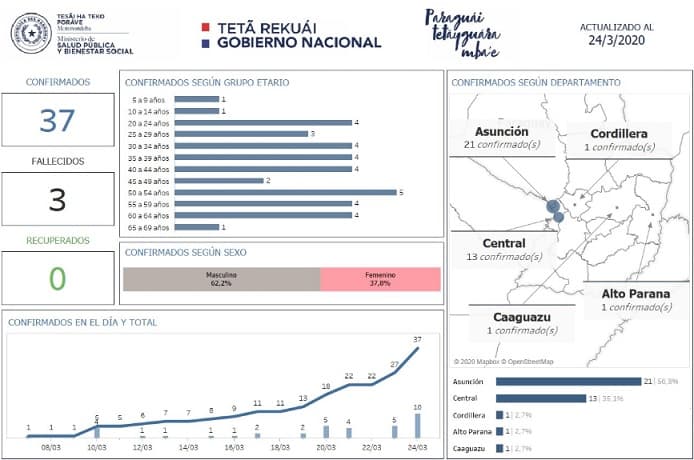 El Informe actualizado a la fecha del Ministerio de Salud con relación al avance del Covid-19 en el país, muestra que son tres los casos confirmados en el interior del país.