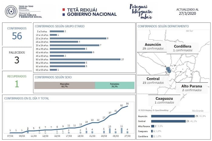 Mientras que en los demás departamentos se mantienen las cifras: Cordillera y Caaguazú con un caso cada uno y Alto Paraná, con dos confirmados.