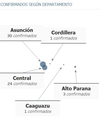 Con las nuevas cifras, se puede observar que Asunción tiene la mitad del total, es decir 30 sobre 59 pacientes. Por su parte, en el departamento Central hay otros 24.