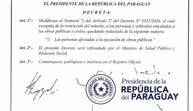 El Poder Ejecutivo dio a conocer el Decreto 3532, mediante el cual se anula la liberación de las obras civiles, la cual se había oficializado mediante el Decreto 3525, del pasado jueves 9 de abril.