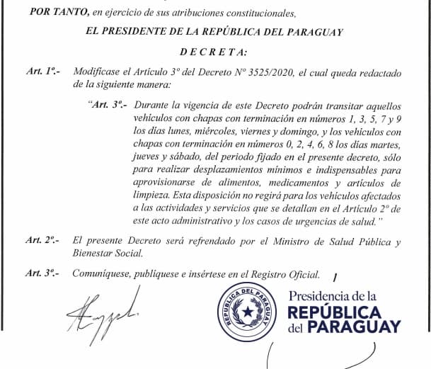De esta manera sigue vigente la orden de circular por número de chapa, para los no exceptuados, además los servicios de delivery también continuarán operando.