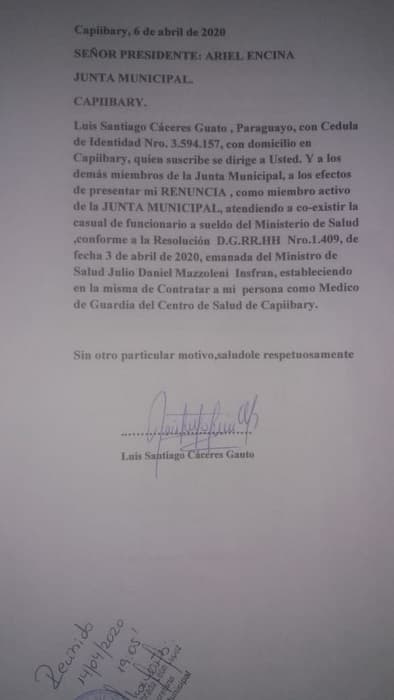 En una entrevista para Radio 1000 AM, el Dr. Luis Cáceres explicó los motivos por los cuales decide dejar su cargo en la Junta Municipal de Capiibary.