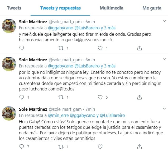 “Por favor dejen de publicar pelotudeses. La jueza nos indicó que los casamientos civiles están permitidos”, manifestó.