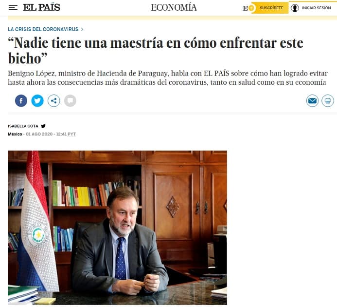 En una extensa entrevista, el secretario de Estado dijo al medio que Paraguay está sacando provecho de su estabilidad macroeconómica para poder capear la crisis a causa del coronavirus.