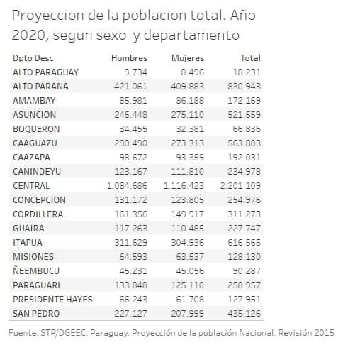 Haciendo un cotejo entre los datos de Salud y de la Dirección General de Encuesta, Estadísticas y Censos (DGEEC), se puede observar que el porcentaje de población del país que está afectado por el virus es mínimo.