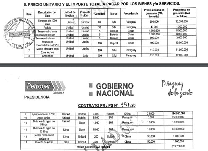 De acuerdo a los datos que se encuentran en la página de la Dirección Nacional de Contrataciones Públicas (DNCP), el contrato era por valor de G. 359.700.000 y se llegó a pagar G. 338.811.240.