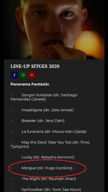 “Estoy más que contento con esta gran noticia. Morgue estará en uno de los festivales de Cine más prestigiosos del mundo "SITGUES" ¡Gracias Sitges por el llamado! a filmshark por el gran trabajo y por sobre todo gracias a Dios por esta nueva corona!! Salud por el cine Nacional”, escribió en redes el director Hugo Cardozo.