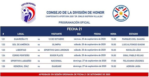 El Consejo de la División de Honor se reunió al mediodía de este lunes por medios telemáticos para la programación de la Fecha 21 del Torneo Apertura.