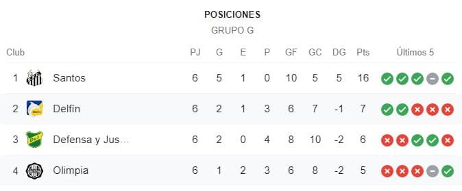 Con el 0-1, Olimpia quedó último con solo 5 unidades, Defensa y Justicia, con 6 unidades, accedió a la Copa Sudamericana. Santos y Delfín están en octavos de la Libertadores.