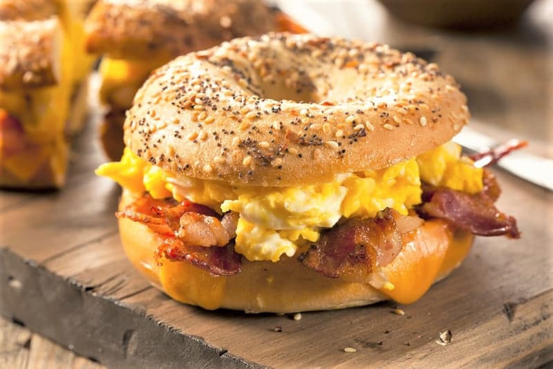 Los bagels son una opción popular para los desayunos para llevar, ya que tienden a conservar su contenido mejor que el pan normal sin empaparse. También son más pesados que muchos otros productos de pan.