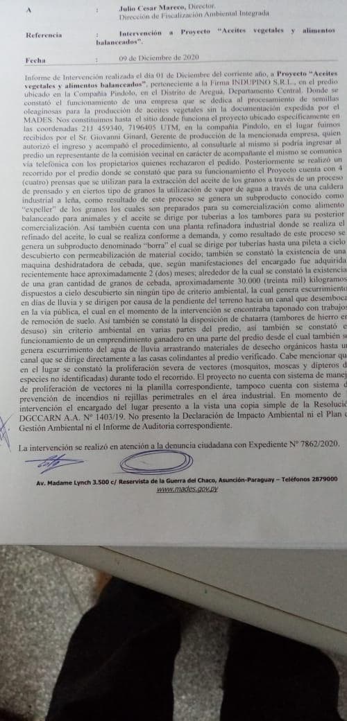 Refirió que el Ministerio del Ambiente y Desarrollo Sostenible (MADES) y la Fiscalía realizaron sus respectivos informes y que llamativamente esta última indicó que no encontraron anormalidades, mientras que la cartera estatal detectó irregularidades en el plan de gestión ambiental.