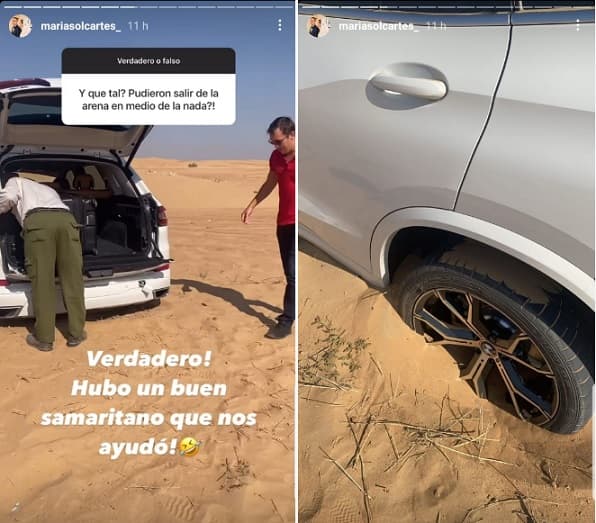 La hija de Horacio Cartes, Sol Cartes, se encuentra de vacaciones en los Emiratos Árabes Unidos. En este viernes tuvo un percance en medio del desierto.
