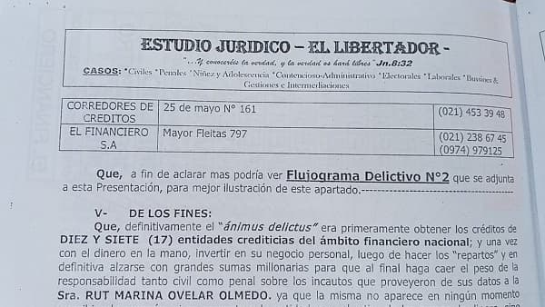 Según la investigación, Ovelar siendo funcionaria del Colegio Privado Santa Ana, conformó una asociación con personas de escasos recursos, a quienes prometió conseguir créditos de manera rápida y fácil, a cambio, los solicitantes debían entregar sus documentos para ella realizar las gestiones.