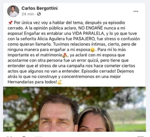 Bergottini publicó en su cuenta en Facebook aclaraciones sobre diferentes posteos que comenzaron a correr este viernes, en uno de ellos se justificaba una supuesta infidelidad.