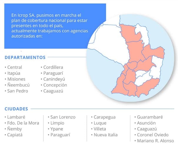 En su página web, iCrop afirma tener agencias en varios puntos del país, sin embargo no aporta ni dirección exacta ni número telefónico.