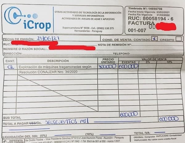 El comité le dio a esta empresa la potestad de cobrar G. 300.000 por cada máquina al mes a los explotadores, y de ese monto, destina al Estado la suma de G. 88.051.