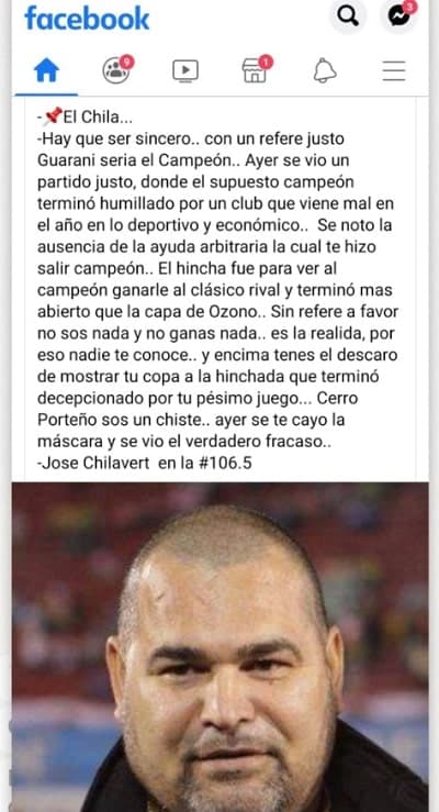 Filoso, como es su característica, Chilavert se lanzó contra un posteo en el que se reproducían sus supuestas declaraciones.