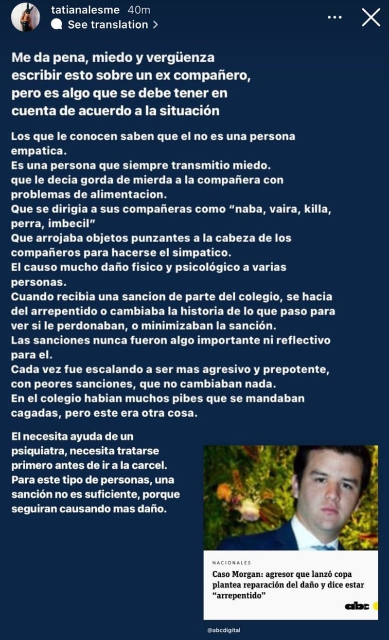 En los escritos también coinciden en que el comportamiento que Olmedo Appleyard tuvo el sábado, en la discoteca Morgan con la joven Nara Ledesma, es característico en él y algunos hasta afirman que su “arrepentimiento” no es sincero.