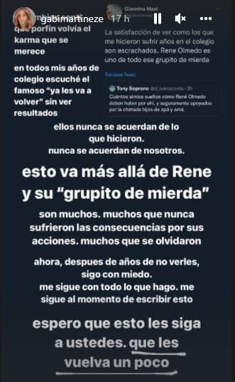 Según las publicaciones, Olmedo tiene antecedentes sobre el trato con las demás personas, en especial en época de colegio con sus compañeras, a quienes se dirigía con palabras como, “vaira, naba, killa, perra, imbécil”, e incluso les hacía bullying, ya sea por su peso u orientación sexual.
