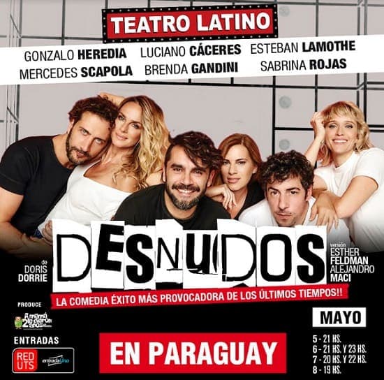 La obra argentina “Desnudos” fue anunciada hace unas semanas y generó una gran expectativa, tanto es así que inicialmente se tenían previstas tres funciones, número que se duplicó y ahora son seis puestas en escena, entre el jueves 5 y domingo 8 de mayo, en el Teatro Latino (Tte Fariña e Iturbe).