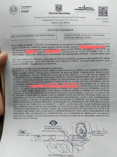 Tras lo sucedido, Ocampo Pérez fue detenido y trasladado en la comisaría 58 de Mbokayaty, de Ñemby, donde aseguran que la jueza Ana Esquivel le benefició con cinco días hábiles más de estancia en el lugar.