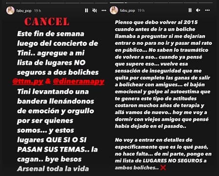 Molesto, luego de lo ocurrido, Rodríguez utilizó sus redes para hacer un descargo contra el bar Dinerama, que se encuentra ubicado sobre la avenida Sacramento de Asunción.