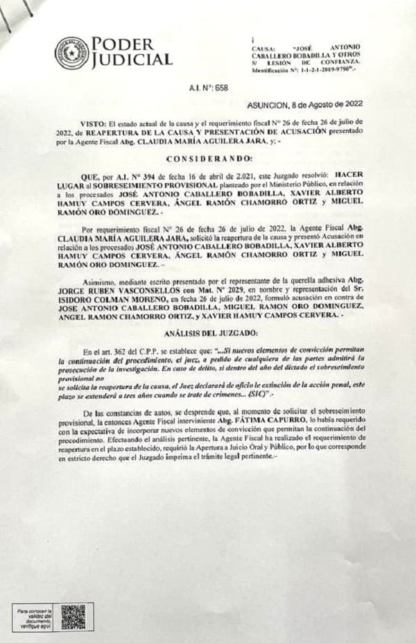 De acuerdo a los antecedentes del caso, las últimas pericias realizadas concluyeron que la Caja Bancaria fue objeto de perjuicio por más de G. 2 billones, por lo que el proceso abierto con relación a los directivos, deberá proseguir.