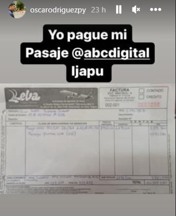 Sin embargo, lo que causó el enojó de Óscar “Nenecho” Rodríguez, fue una publicación en ABC Digital que se titula: “Nenecho fue a Miami con pasaje pagado por contribuyentes”, por lo que respondió al medio a traves de fotografía de la factura del pago de su pasaje y la nota en la que se informaba sobre su ausencia a la Junta Municipal.