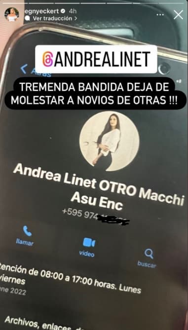 La publicación de la modelo y empresaria mencionaba lo siguiente: “Andrea Linet tremenda bandida, dejá de molestar a novios de otras”. El texto iba acompañado de la foto y el número de celular de la señorita en cuestión. Sin embargo minutos después, el posteo fue eliminado.