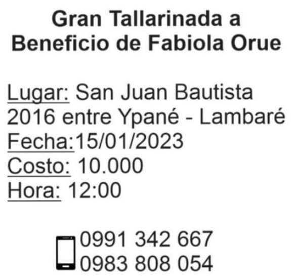 La actividad se llevará a cabo sobre las calles San Juan Bautista 2016 casi Ypané, en la ciudad de Lambaré desde las 12:00 de este domingo 15, el costo de la adhesión es de G. 10.000.