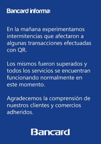 La propia procesadora informó a través de un texto el problema por el que atravesó su red. “En la mañana experimentamos intermitencias que afectaron a algunas transacciones efectuadas con QR. Los mismos fueron superados y todos los servicios se encuentran funcionando normalmente en este momento”, indica el escrito que fue enviado a medios.