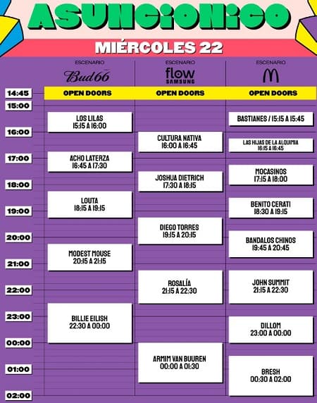 El Asunciónico arrancará a las 15:00 en el Parque Olímpico, de acuerdo a la agenda oficial del festival más importante del país.