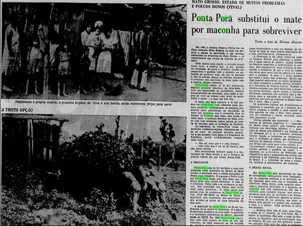 En 1960, el Jornal do Brasil publicó un artículo titulado “Ponta Porã sustituye el mate por la marihuana para sobrevivir”. Este reportaje reveló cómo la marihuana se había trasladado a esa ubicación y vinculaba esta transición con una dura realidad social. Los agricultores que antes cultivaban yerba mate comenzaron a producir cannabis debido a la similitud en las técnicas de cultivo y el conocimiento agrícola existente. Este cambio reflejó una dinámica compleja: áreas caracterizadas por la precariedad, desigualdad y abandono social, político y económico se convertían en lugares ideales para el cultivo ilegal. En este caso, fueron Mato Grosso y Ponta Porã los elegidos.