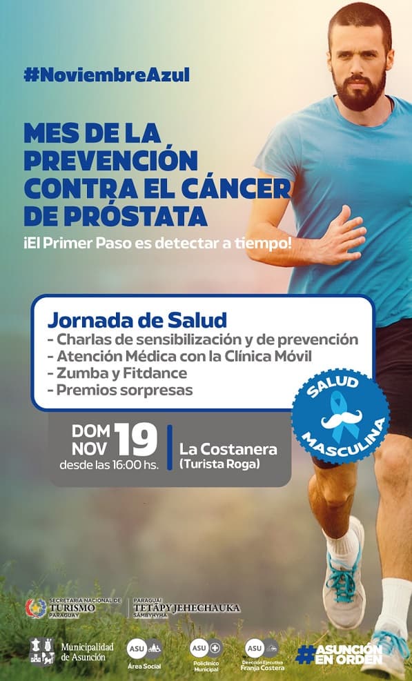 En el marco del Noviembre Azul, mes dedicado a la prevención y concientización del cáncer de próstata, la Dirección del Área Social de Asunción organiza una jornada de salud este domingo a las 16:00 en la Costanera de Asunción, precisamente en Turista Róga.