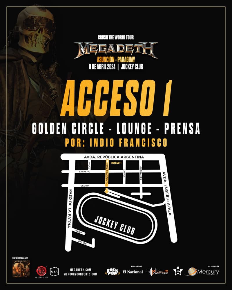 Los mejores y más revitalizantes riffs de la historia del rock se preparan para sacudir Asunción. Megadeth, uno de los máximos exponentes del thrash metal, tiene una cita con el público paraguayo este 11 de abril en el Jockey Club.