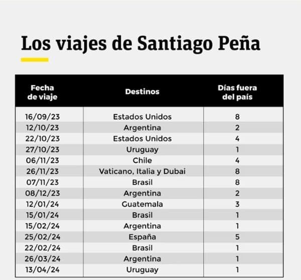 Los viajes de Santiago Peña durante sus primeros seis meses de Gobierno.