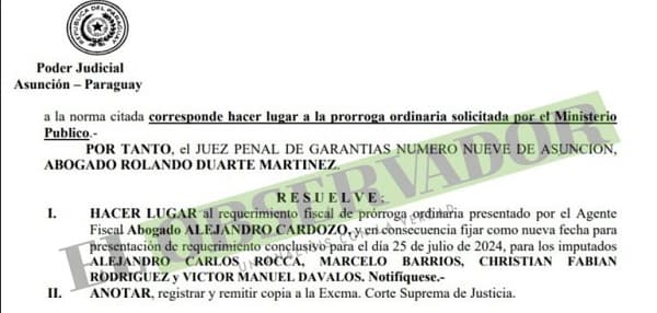 La investigación por la presunta extorsión a un conductor de plataformas por parte de tres policías ha tomado un nuevo giro. El fiscal Alejandro Cardozo solicitó una prórroga de dos meses para la presentación del requerimiento conclusivo, argumentando la complejidad del caso y la necesidad de realizar operaciones técnicas y análisis de datos de los teléfonos incautados. El juez Rolando Duarte accedió a la petición, extendiendo el plazo hasta el 25 de julio de 2024.