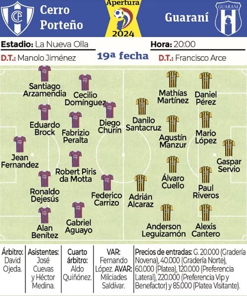 El choque entre el Ciclón y el Aborigen está programado para las 20:00 horas en el estadio La Nueva Olla de Asunción. El árbitro designado para impartir justicia es David Ojeda, quien contará con el respaldo del VAR a cargo de Fernando López. Se espera un encuentro vibrante y de alta intensidad, donde ambos conjuntos dejarán todo en el terreno de juego para alcanzar sus respectivos objetivos.