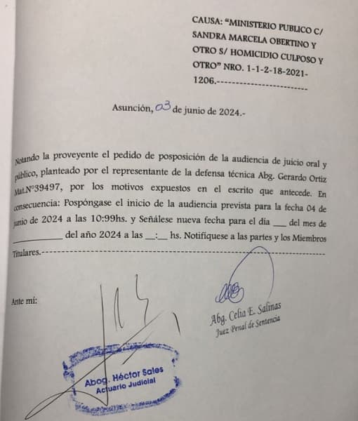 Esta no es la primera vez que se suspende el juicio. Anteriormente, el 25 de abril del corriente año, también se pospuso porque el Tribunal tenía previsto otro juicio por robo agravado. “Sin desprestigiar el otro caso, no amerita que nuevamente se suspenda este juicio tratándose de una causa tan importante sobre la muerte de una niña”, enfatizó Franco.