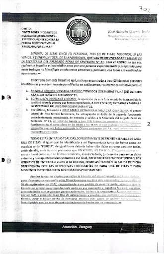 Consecuentemente, la defensa de Romero Maciel presentó un escrito tanto ante el Ministerio Público como ante el Juzgado de la causa solicitando la nulidad del peritaje realizado, argumentando la omisión de las personas señaladas, lo cual resultó sumamente llamativo para Romero Maciel y su abogado defensor.