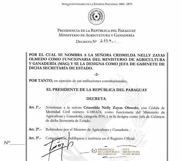 Mientras tanto, el ministro parece más preocupado por afianzar su poder. LPO ha confirmado el nombramiento a dedo de Crismilda Nelly Zayas como nueva jefa de gabinete del MAG, sin título universitario y con un jugoso salario. Este es solo el último ejemplo de una serie de designaciones cuestionables.“Vamos a salir y los cortes serán indefinidos”, advierte Víctor Guerreño, representante de la Cooperativa de Sojeros de San Pedro. La amenaza es clara: 20 mil agricultores están listos para paralizar el país si no se atienden sus demandas.