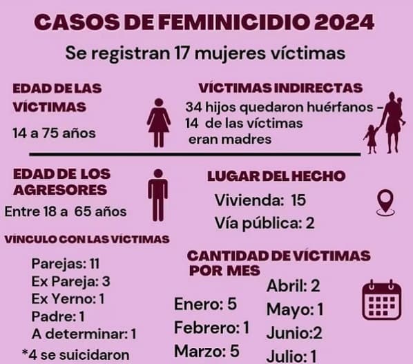 Detrás de cada feminicidio, hay historias desgarradoras de familias destrozadas. De las 17 víctimas registradas hasta el momento, 14 eran madres, dejando a sus hijos en una situación de vulnerabilidad y desamparo. La mayoría de los agresores eran parejas o exparejas de las víctimas, lo que evidencia la necesidad urgente de abordar la violencia doméstica y de género en todas sus formas.