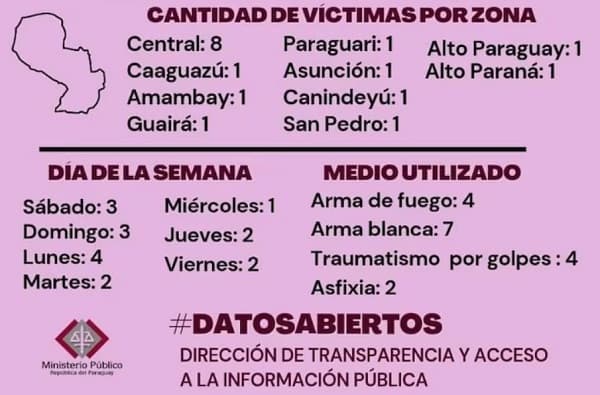 Leé también: Feminicidios en Paraguay: 16 mujeres asesinadas y 34 huérfanos en lo que va del añoDe los 16 autores identificados, 12 fueron imputados, mientras que cuatro se quitaron la vida antes de ser capturados. Es alarmante que uno de ellos contaba con una medida de restricción de acercamiento otorgada por el Juzgado, lo que evidencia las fallas en el sistema de protección a las víctimas. Catorce de las mujeres asesinadas eran paraguayas, mientras que dos eran de nacionalidad brasileña.