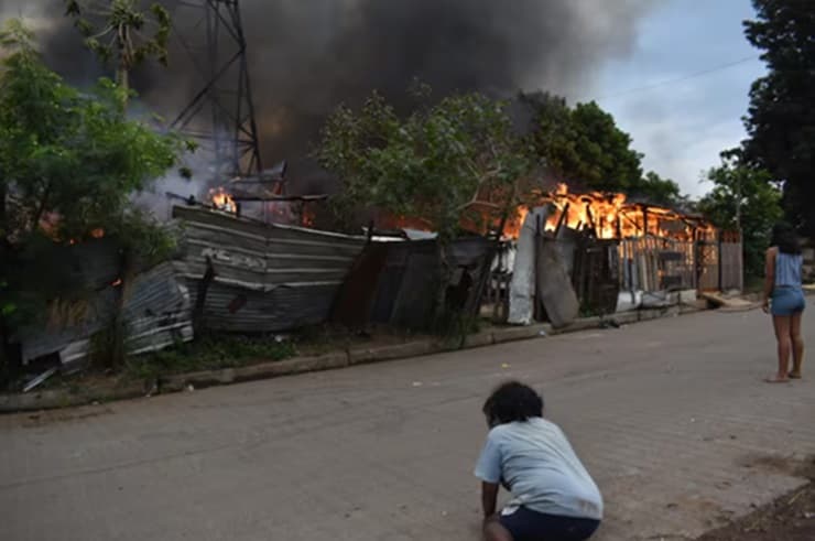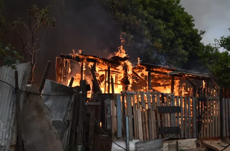 Incendio de precarias viviendas detrás de la Policía Urbana, zona de Chacarita.